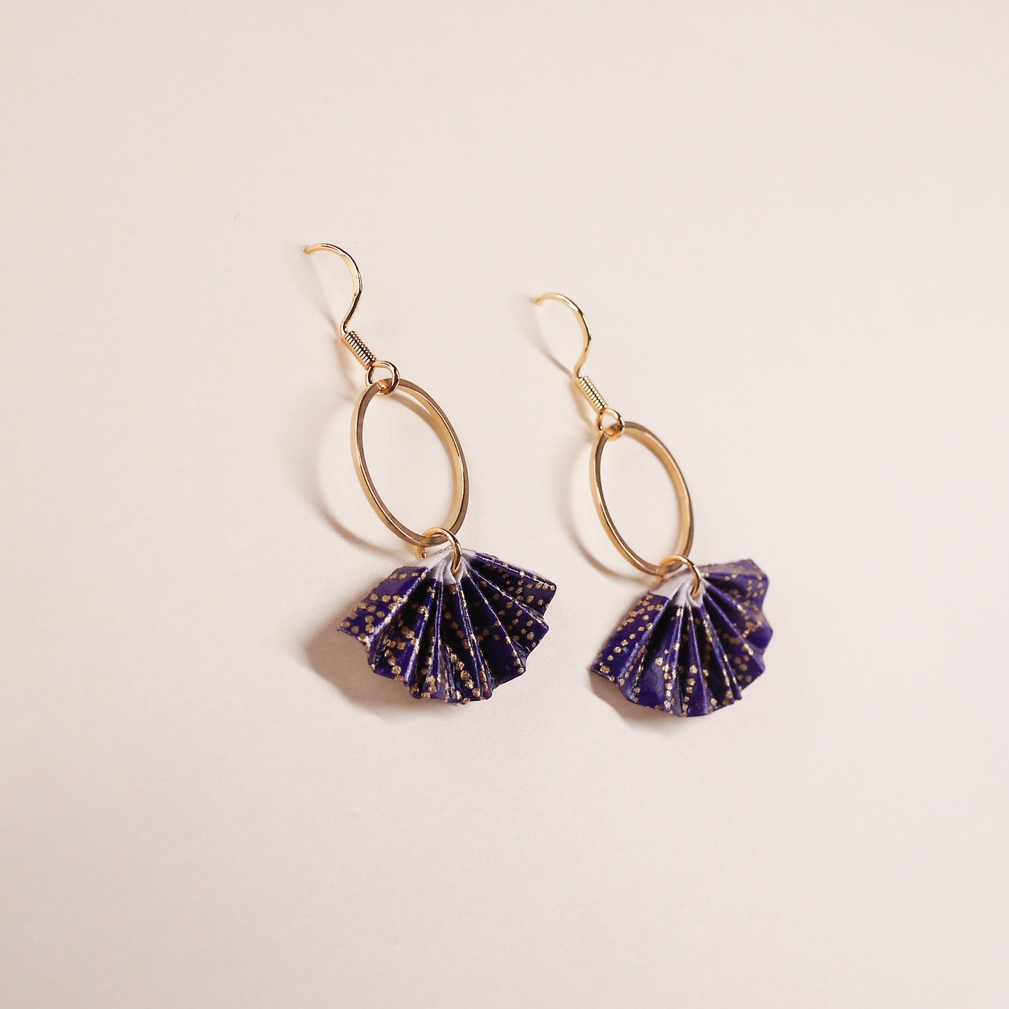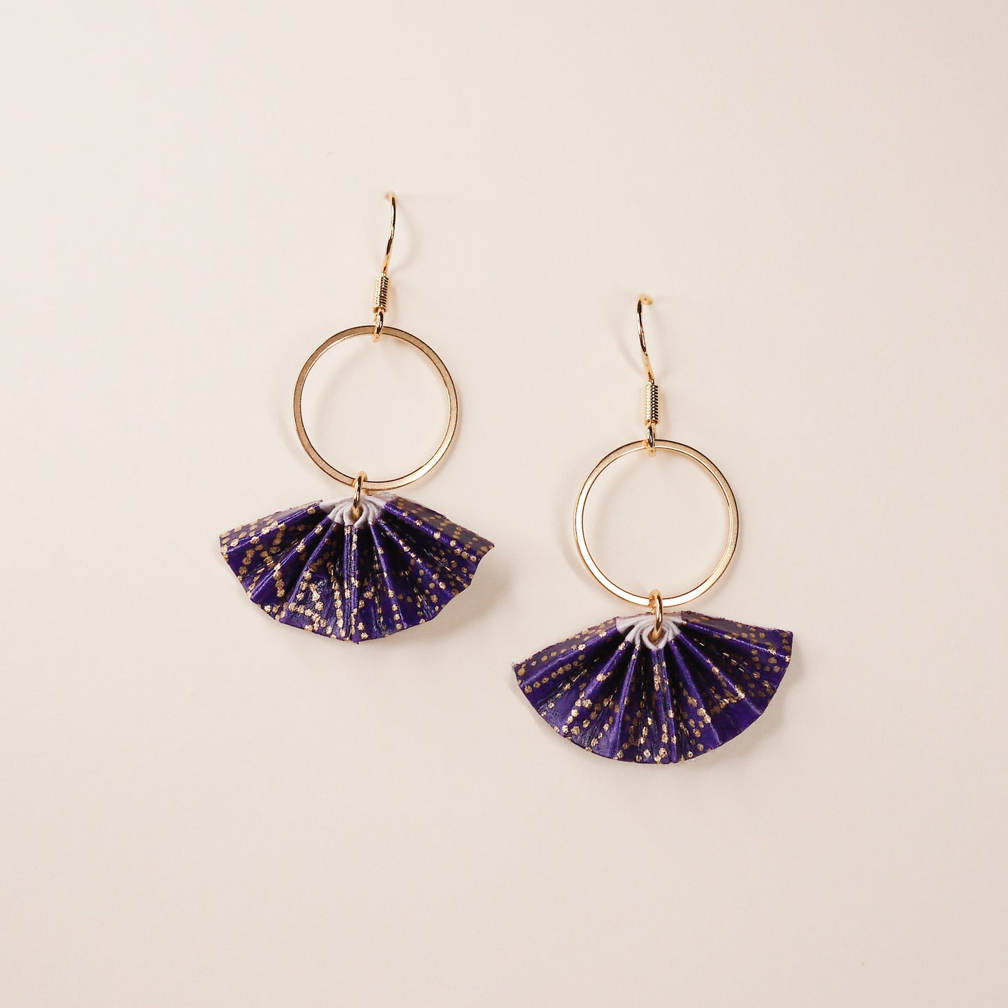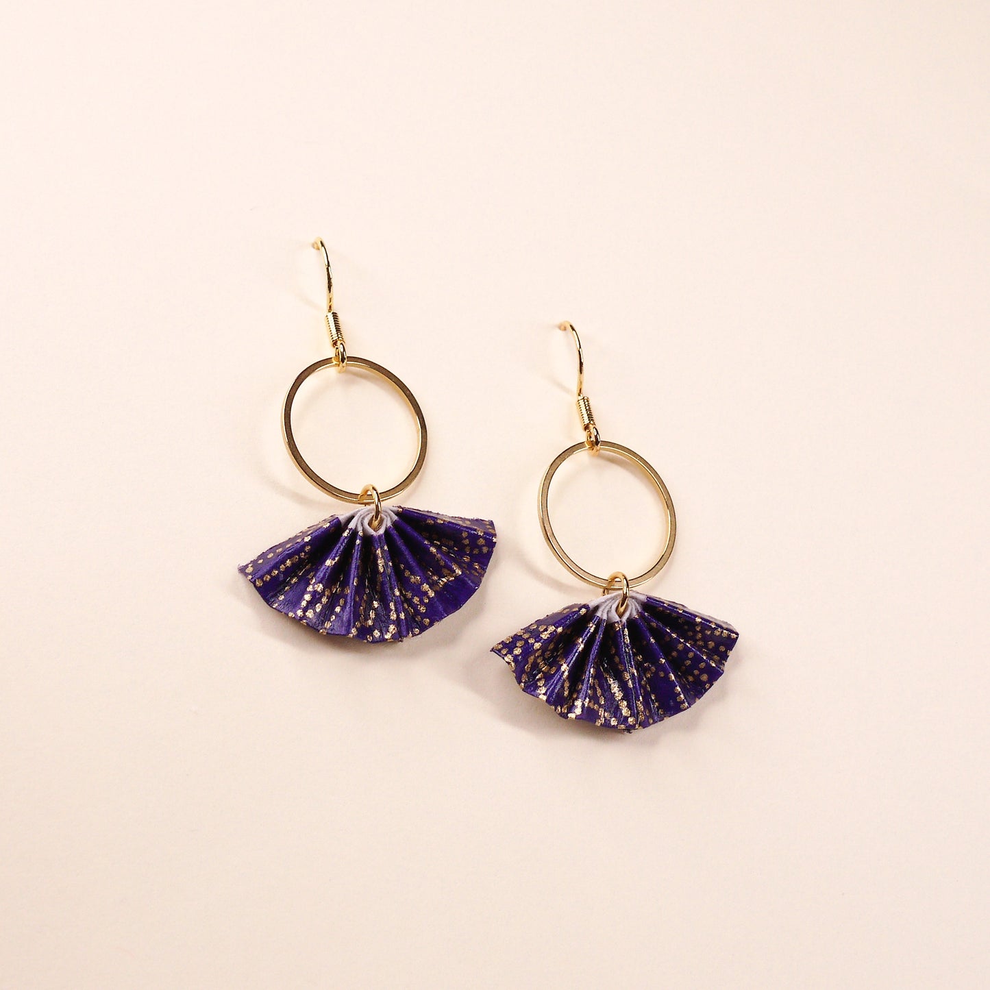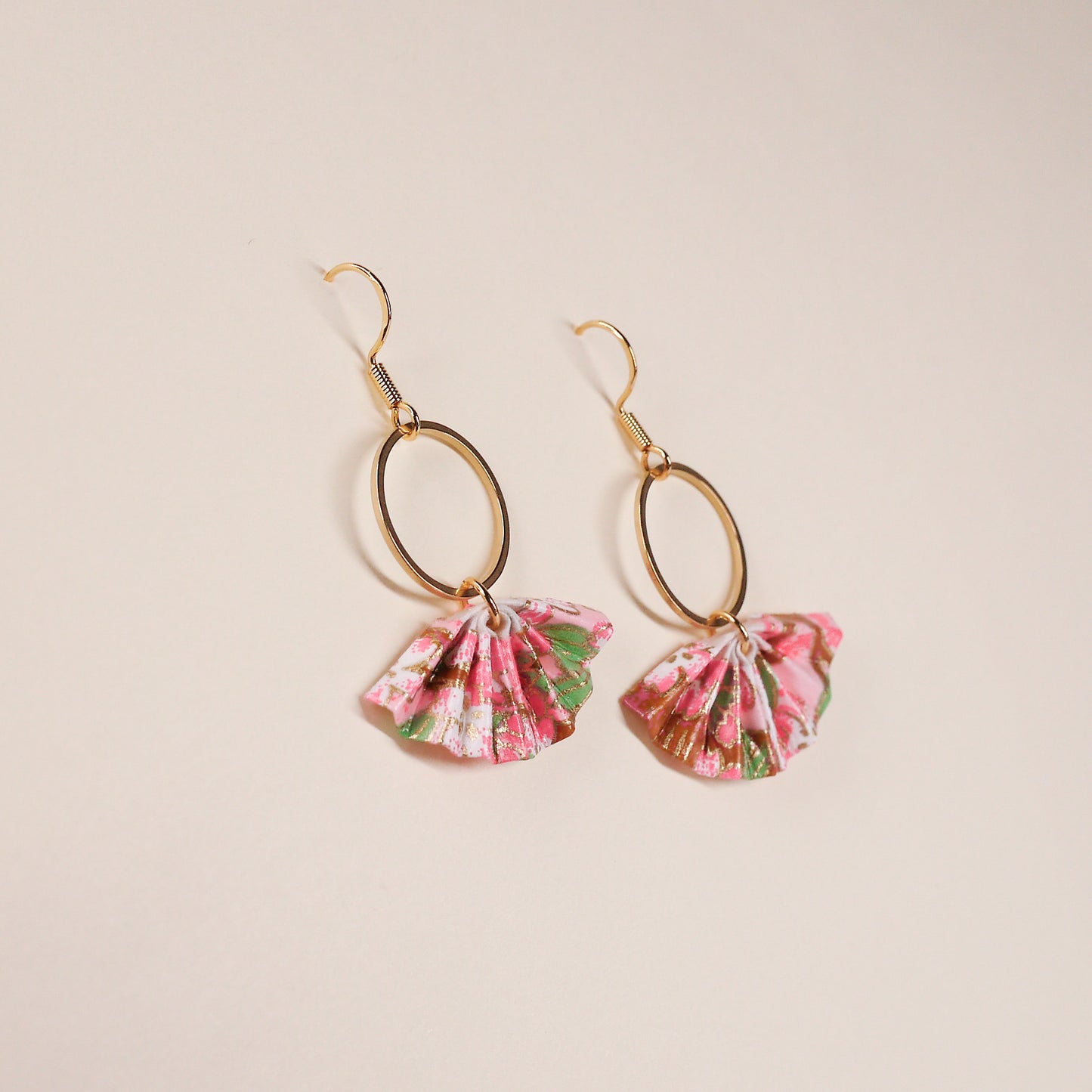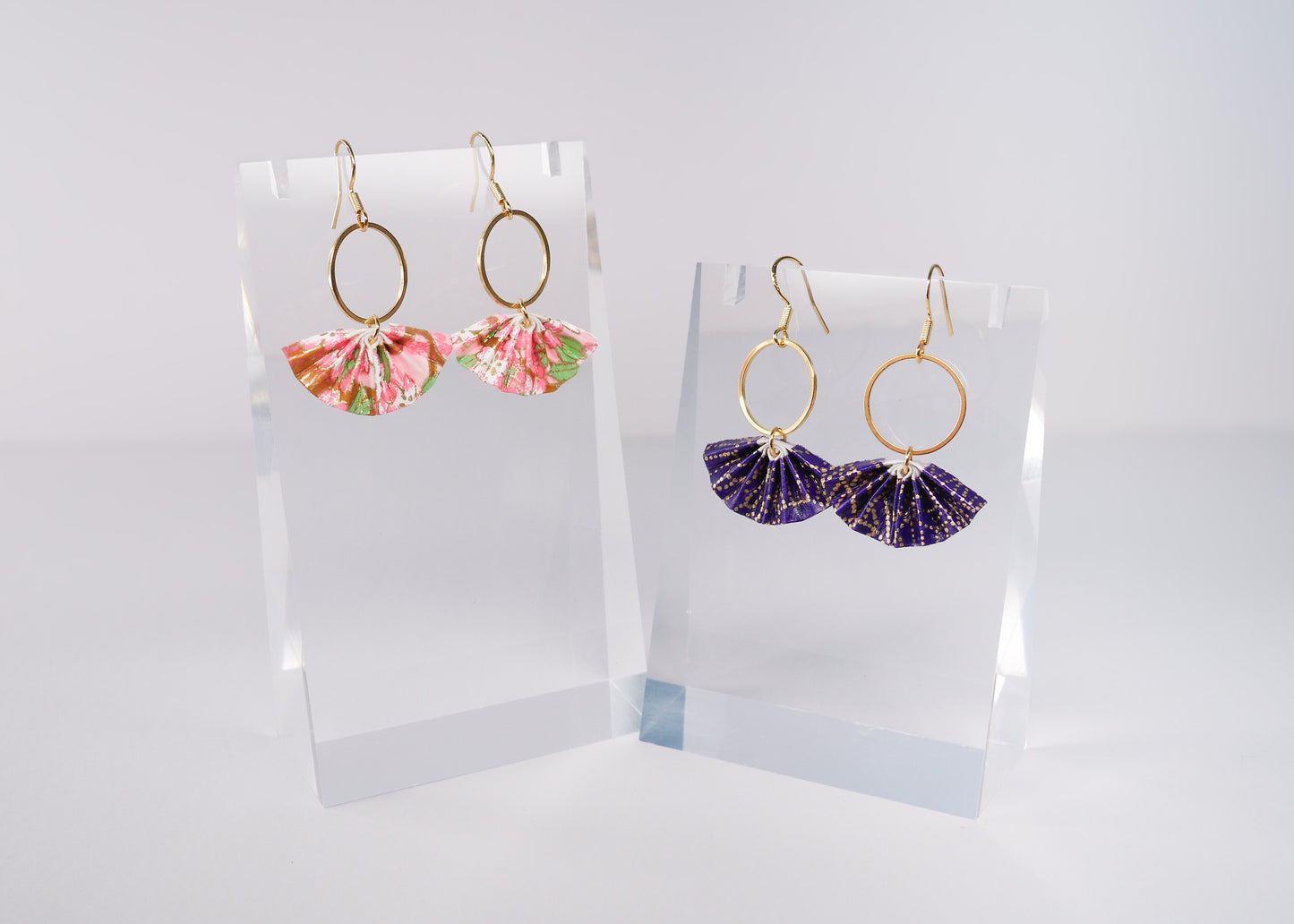 Add a delicate, artistic touch to your style with these origami fan earrings, gracefully suspended from stainless steel hoops. Made from traditional Japanese washi paper, each fan is carefully folded and sealed with a water-resistant glaze for lasting beauty and durability.