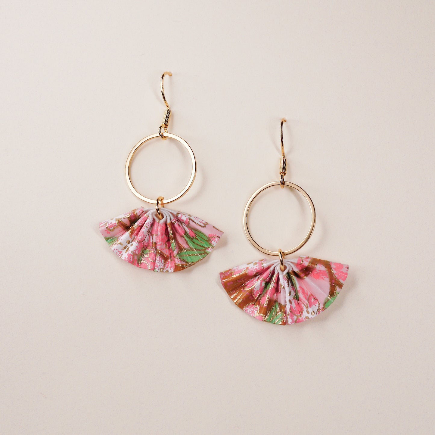 Double Hoop Fan Necklace to match Cherry Blossoms on Pink Earrings