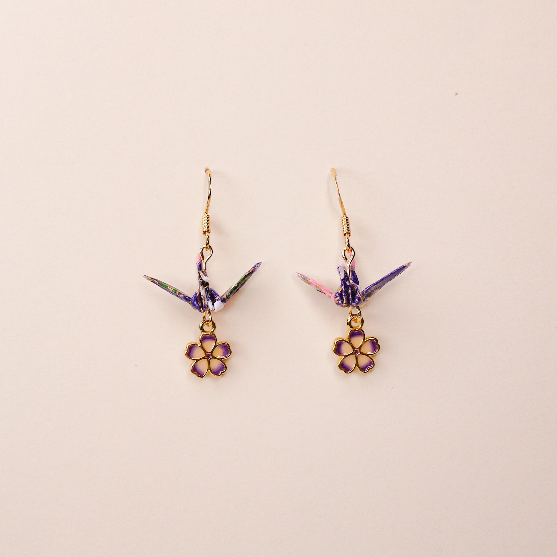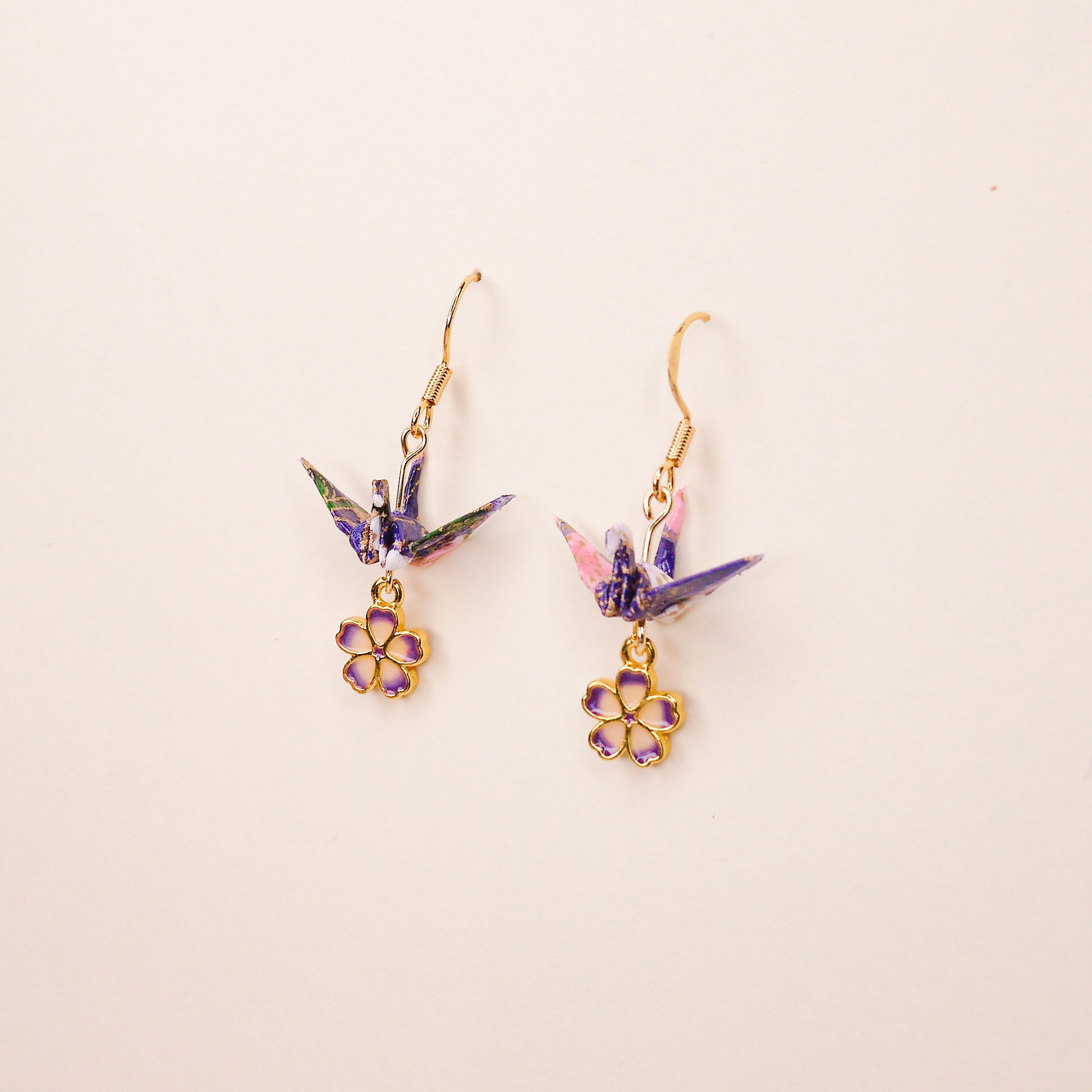 [LUCK] Small Crane and Cherry Blossom Earrings
